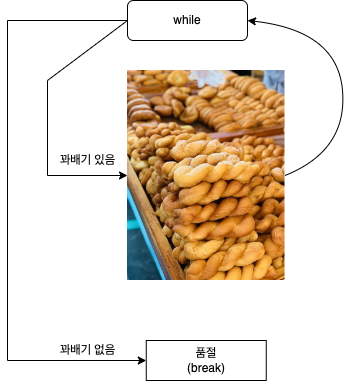 위 코드의 알고리즘은 아래와 같으며, while은 '~동안'이라고 번역하면 됨